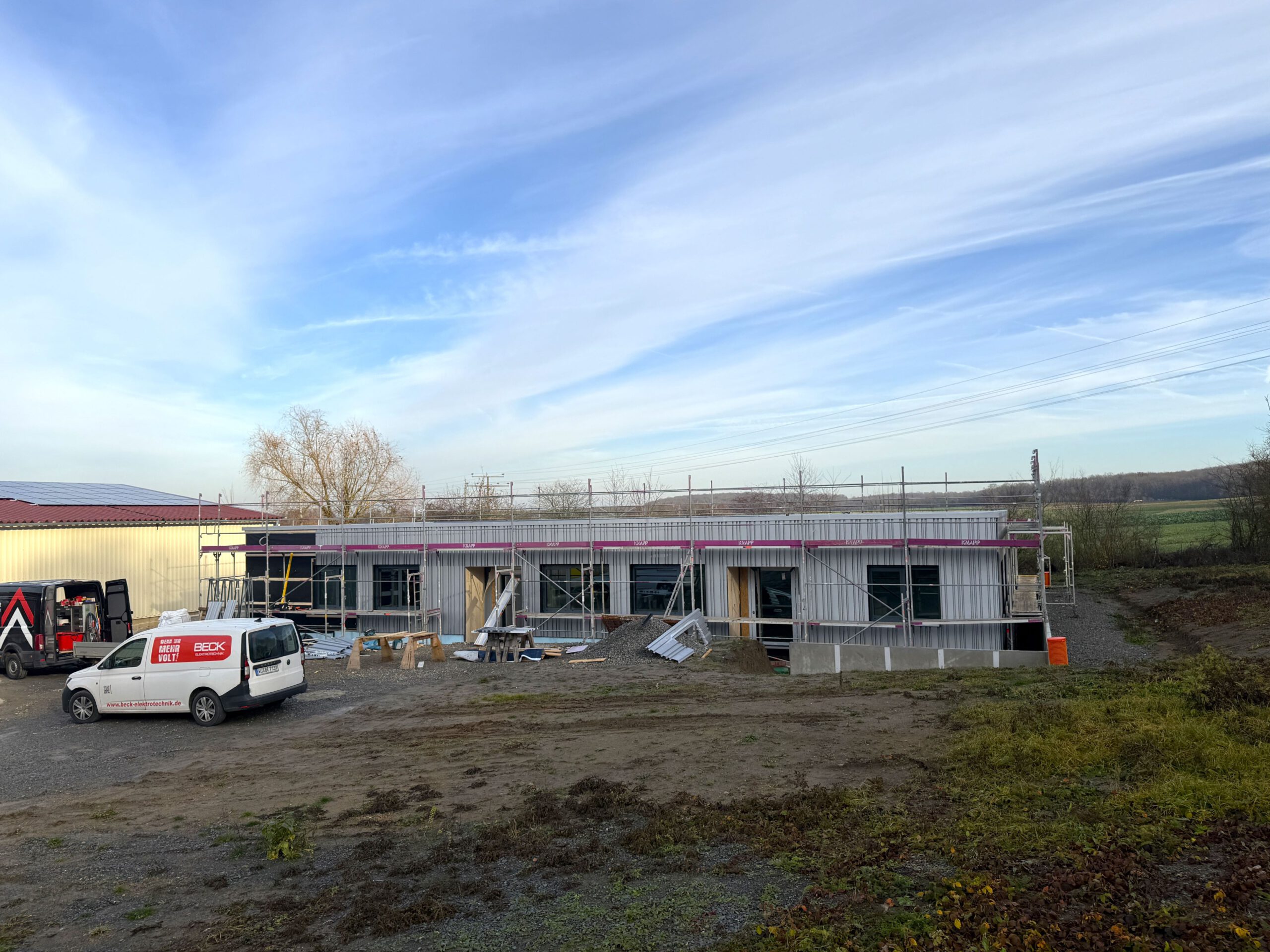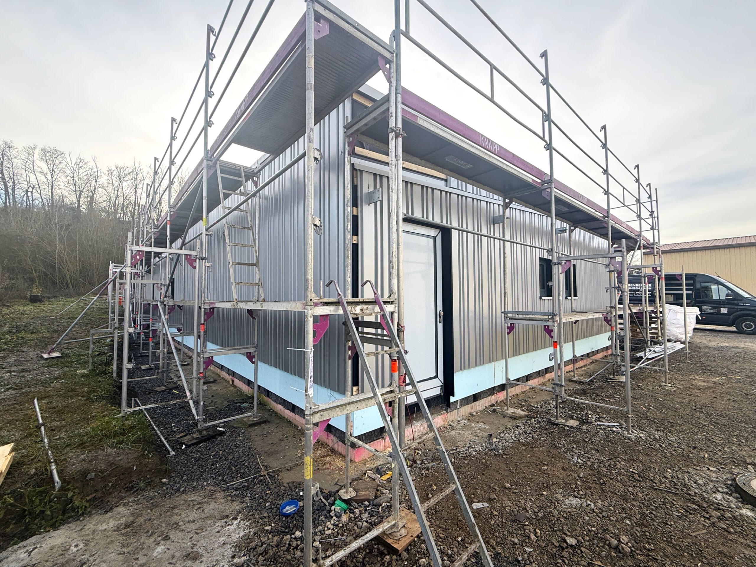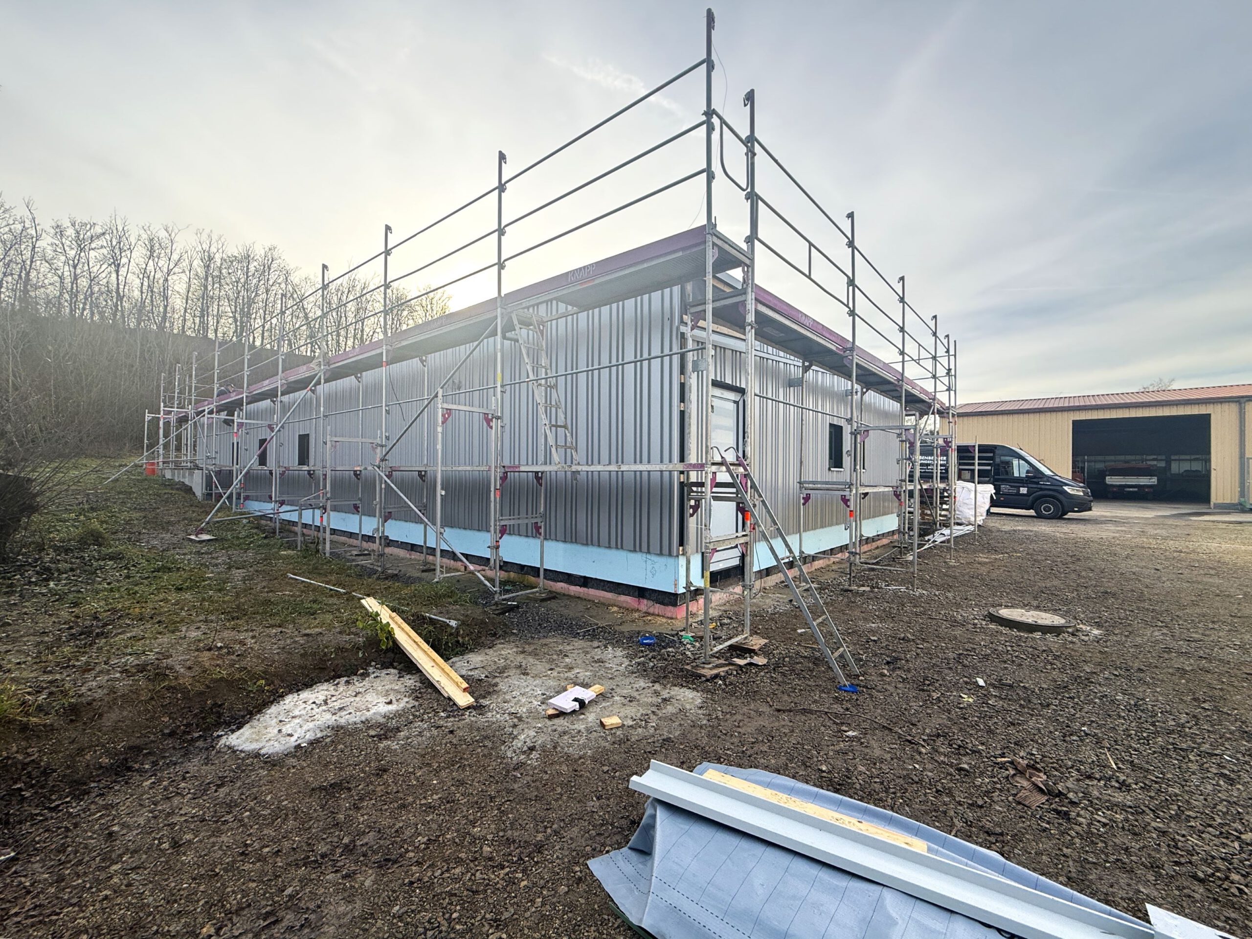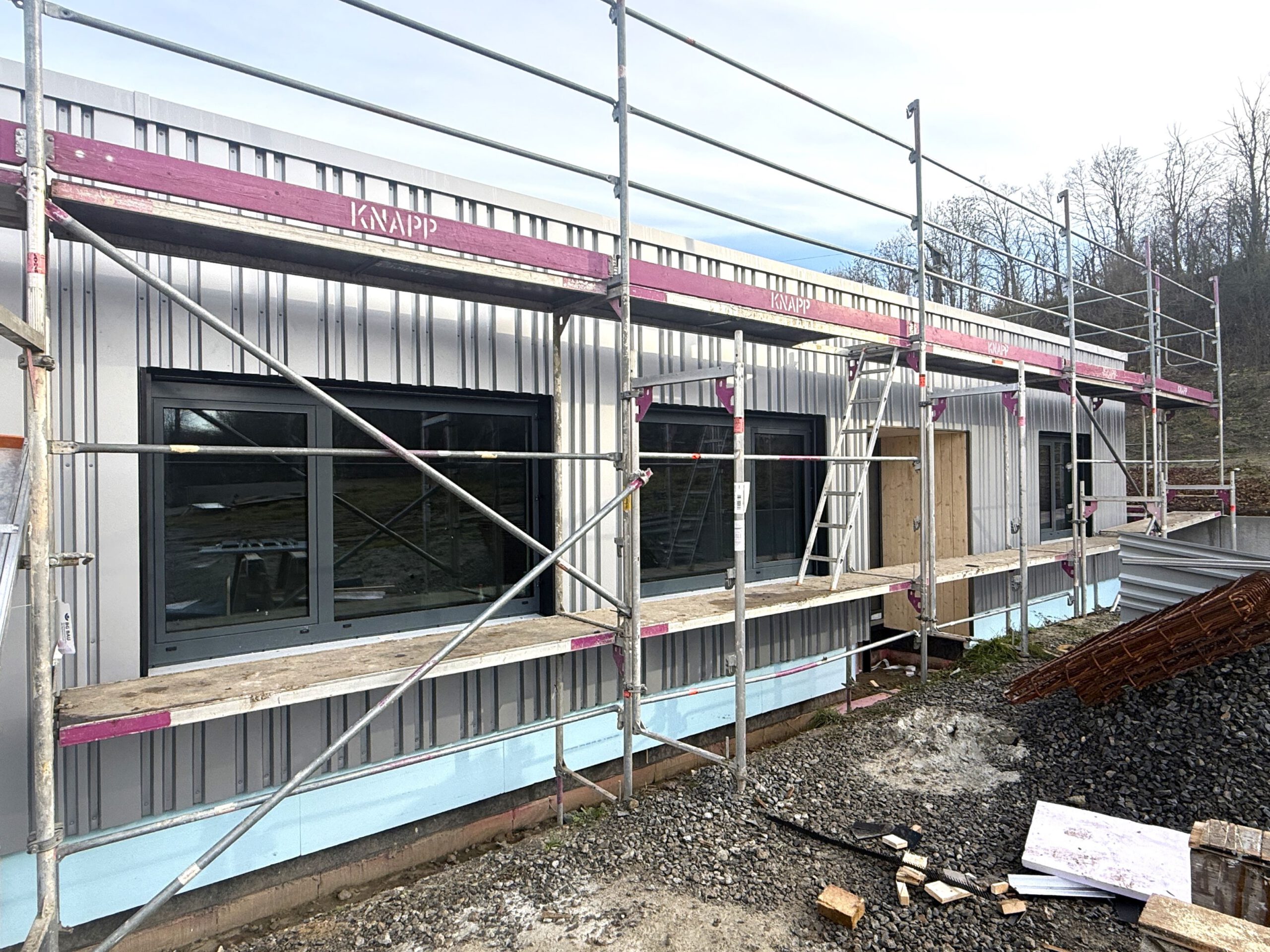 Baustellen-Update Bauhof Kürnach:Mit der Montage der VHF-Fassade Ende 2025 wurde ein weiterer Bauabschnitt erfolgreich abgeschlossen.